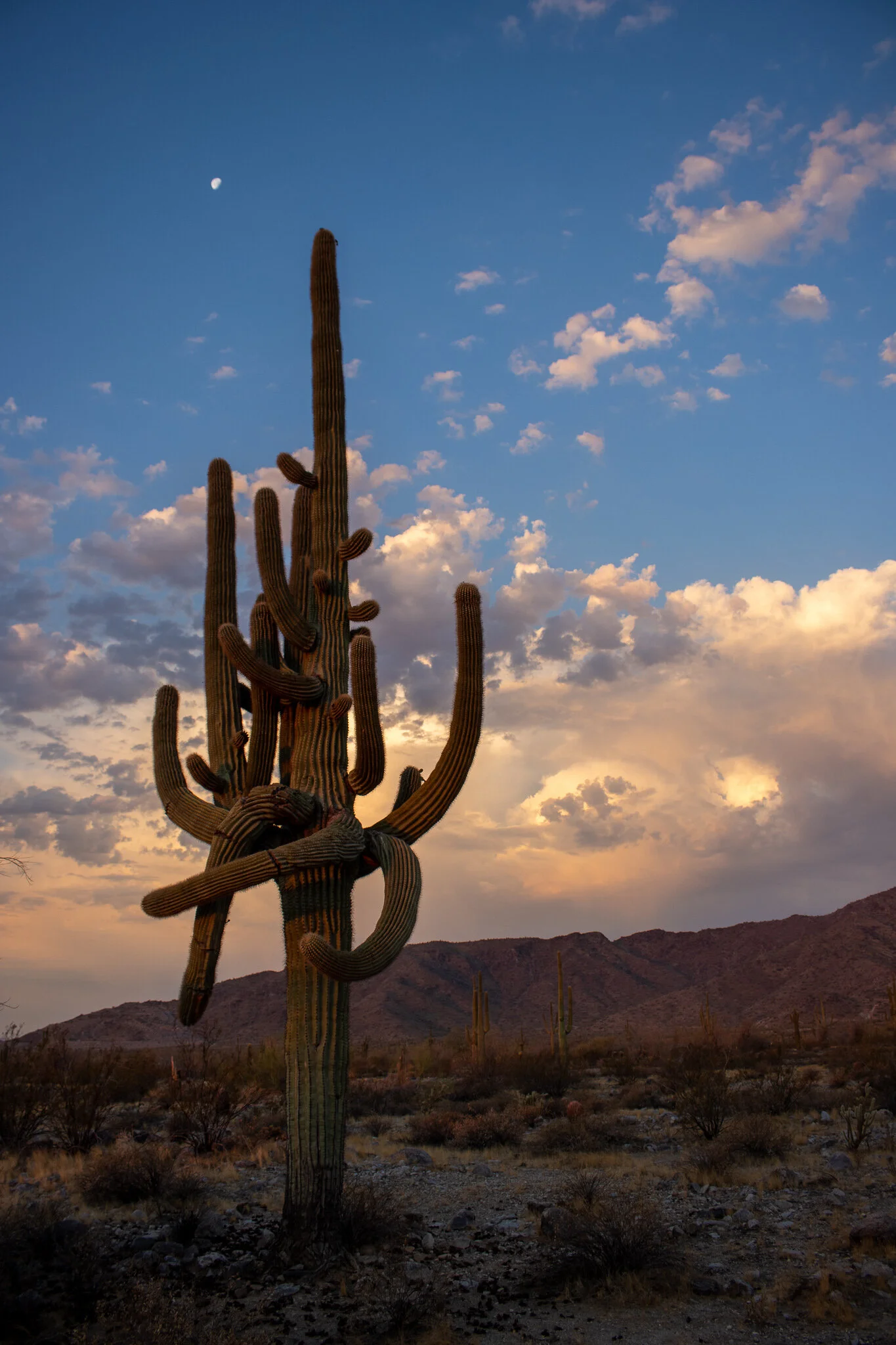 That’s my other favorite part of the desert sunrise… the opposite of the eastern horizon!! The sun is so intense in its entrance, that the reflection is just as powerful on the western foothills and overhead clouds. They appear to be lit up by glow lights that set a moody, reflective feeling to contrast the sun’s searing rays.